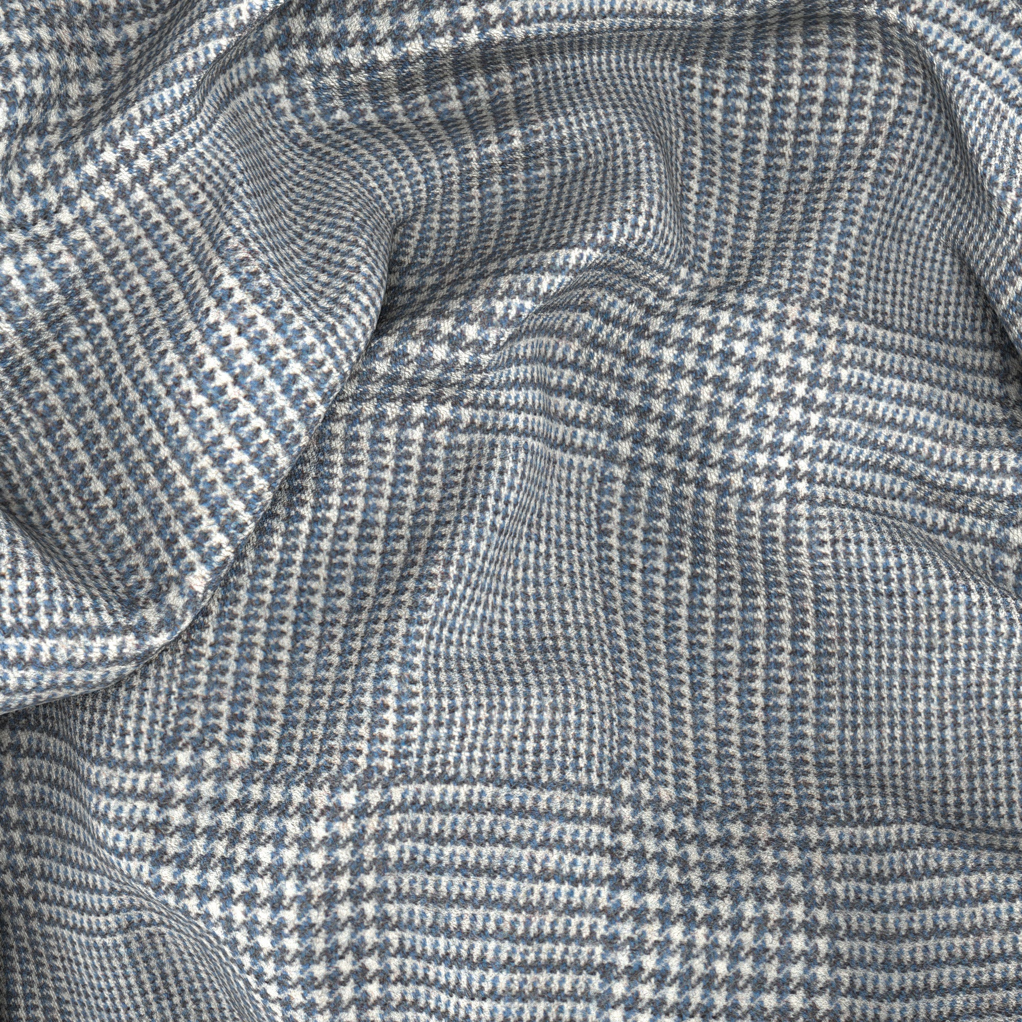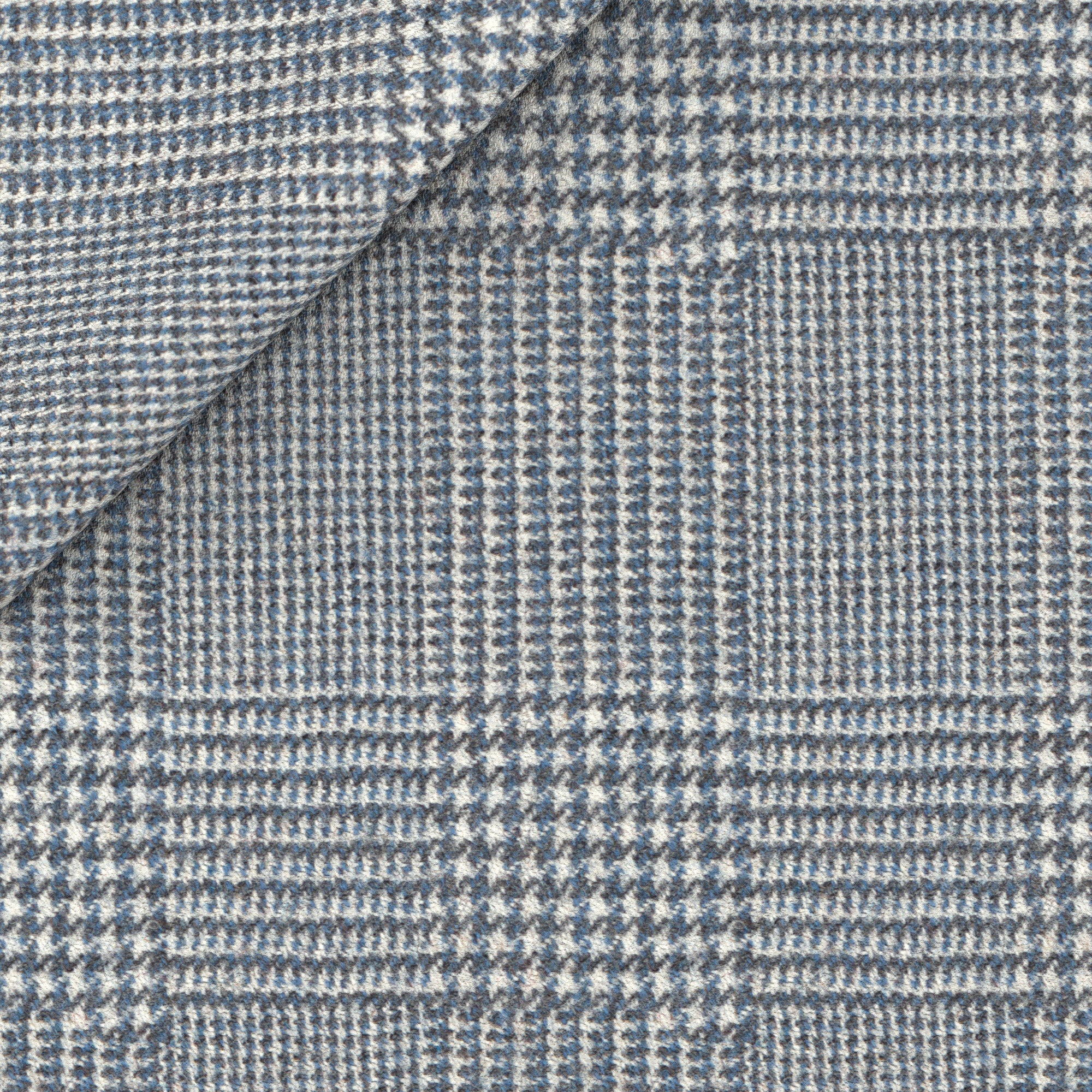 Giacca realizzata Su Misura in lana del lanificio Ermenegildo Zegna con una fantasia Principe di Galles nei toni raffinati dell'azzurro. Un tocco di luminosità per un capo invernale da indossare in ufficio e nelle occasioni formali.