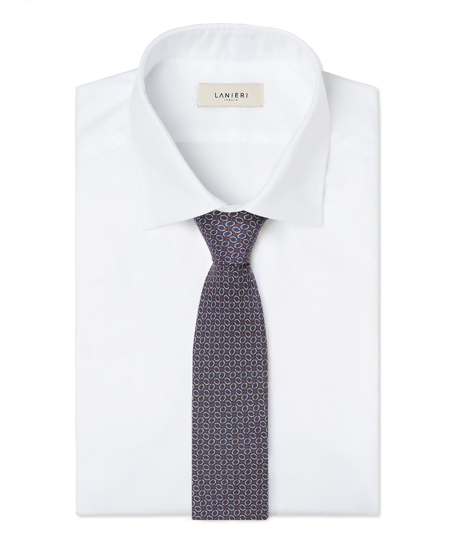 Cette cravate est réalisée en 100% soie en Italie. Élégante, formelle et raffinée, elle présente un motif à chaînes bleues qui en fait un accessoire de style indispensable pour les occasions les plus formelles ou pour le bureau. Les cravates Lanieri peuvent être personnalisées pour créer un style unique et personnel.